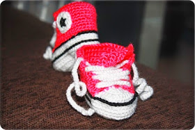 Dentro de poco seremos una más en la familia y como toda la ropa de bebé (con respeto para todos) me parece demasiado repipi, he estado buscando modelos más modernos de patucos. Entre ellos he encontrado estos: